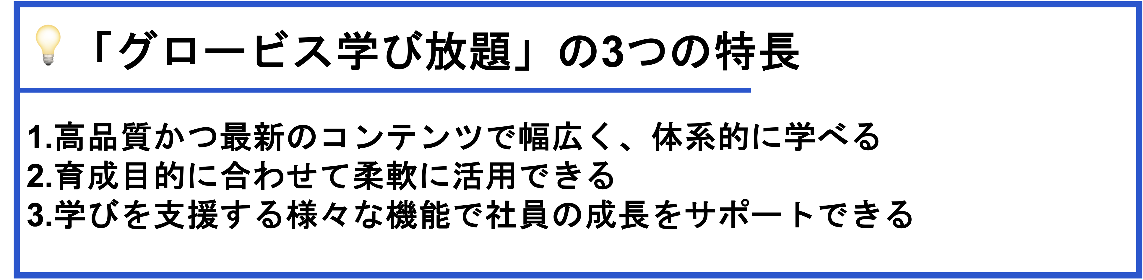 ここでは、動画研修におすすめなeラーニング「グロービス学び放題」の特長を3つご紹介します。