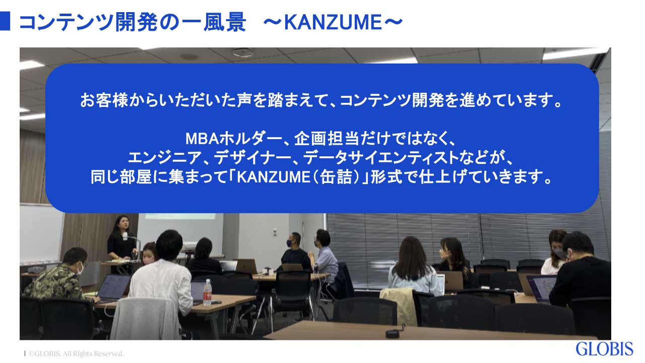 コンテンツ開発チームのスタッフはその殆どがMBAホルダーで、社内に有するMBAの教材開発を手掛ける専門研究機関と協力し、学術的かつ現場で使える学習コンテンツの制作に取り組んでいます。