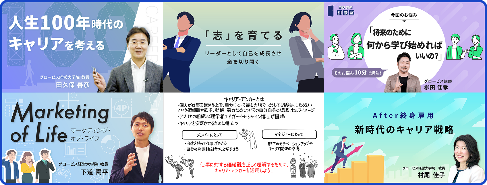 自己成長に繋がるスキルからキャリア戦略の考え方まで、志を軸として理想のキャリアを歩むために必要な知識を学べます。